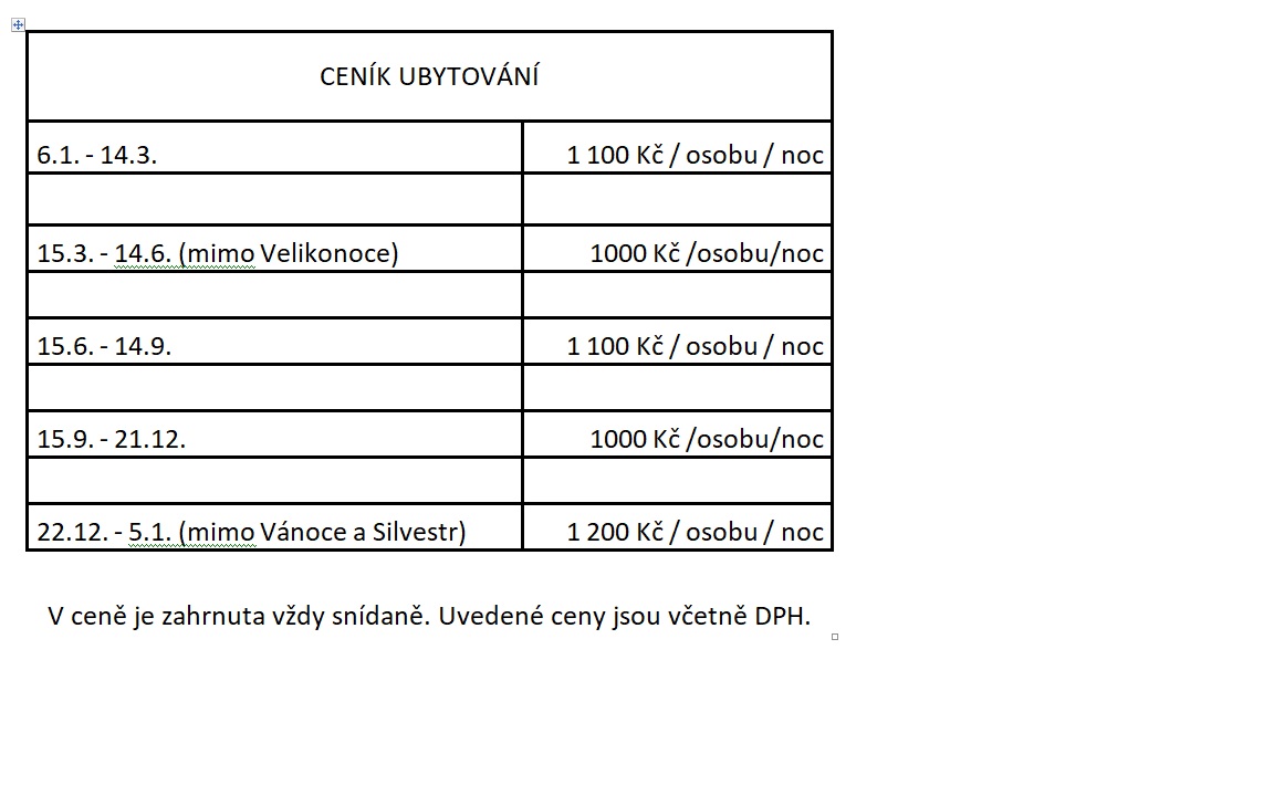 Snídaně formou bufetu je podávána v nedaleké restauraci Café Pizza Sněhurka